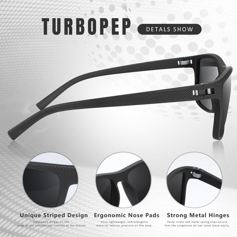 Protect your eyes with TURBOPEP HD polarized sunglasses featuring advanced TAC lenses. Our lenses restore true color. reduce eye damage from UVA and UVB rays. and minimize glare-induced distractions and temporary blindness. Experience brighter scenes and more vibrant colors with enhanced clarity.