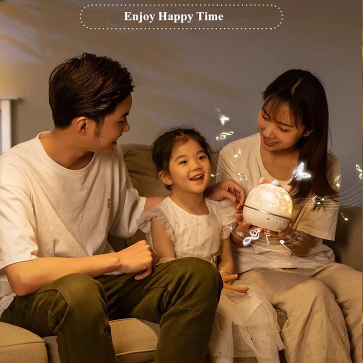 It is not only a projector to project stars and moving galaxies on the wall and ceiling. but also a night lamp. Place it on a table to fill the room with lights or watch your dreary rooms turn into the starry night.