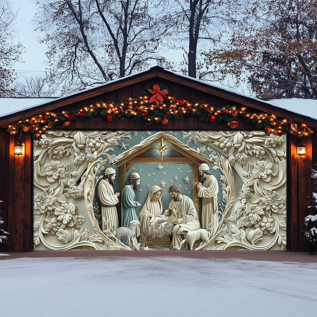 Large Coverage Options: Available in sizes 7 x 8 ft and 7 x 16 ft, providing full coverage for most garage doors and enhancing your home’s exterior decor with festive style.