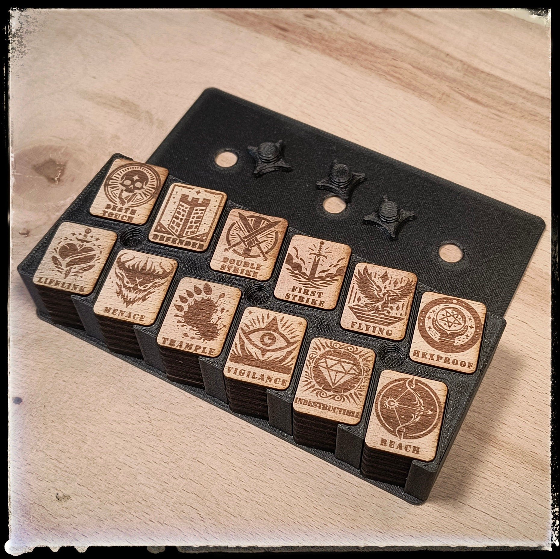 Mark your skills in style and comfort with these high quality wood lasered ability counters. which are compatible with all formats of the Card Game.